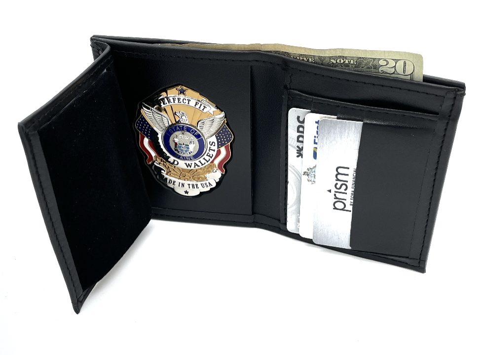 - Holds an ID up to 2 ¾” x 4 ¼” and a badge up to 3” in width. Measures 3 ¾” x 4 ¾” when closed.