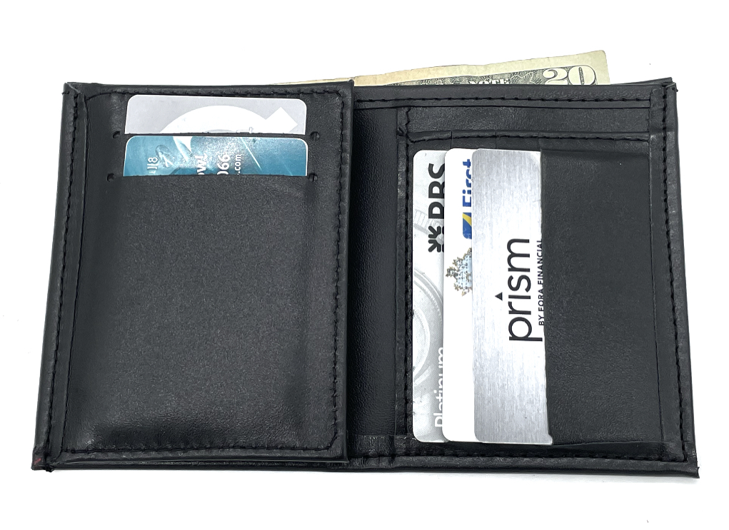 - ID & badge remain concealed behind credit card slots when not needed.