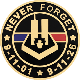SW-C1043M_G - 9/11 Remembrance Pin $32.00 9/11 25th Anniversary Remembrance Pin Finish GoldRhodiumNickelCote D'Or Attachment Double Clutch Collar Brass Size 15/16" (largest)