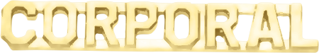 C502_CORPORAL_G - C502_CORPORAL $23.50 Die-Struck Collar Letters read "CORPORAL" Size: 1.5"W x 0.25"H Comes with 2 pins on the back. Sold by the piece (not pair) Finish GoldNickel Attachment Double Clutch