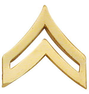 SW-W23_G - Corporal Chevrons $25.20 W23 - Corporal Chevrons Smooth Polished Corporal Chevrons Size: .75" W x 0.75" H Available in silver (nickel) or gold Sold in pairs Finish GoldNickel