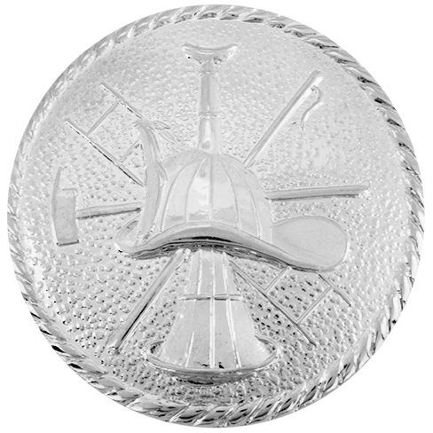 Fire Scramble hat badge on a circle backing.