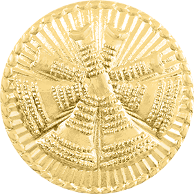 SW-C186TP_G - Four Crossed Bugles $24.00 Four Crossed Bugles Insignia. Measures 15/16" in diameter - just under 1". Sold by the Piece (not pair) Finish GoldRhodiumNickelGol-Ray Attachment Double Clutch