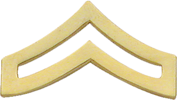 C542A_G - Large Corporal Chevrons $25.00 C542A - Large Corporal Chevrons Smooth Polished Corporal Chevrons. Size: 1.25" W x 0.75 "H Sold in pairs. Finish GoldNickelBlack Attachment Double Clutch