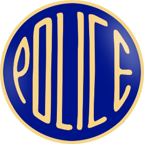 SW-C131_POLICE_BE_G - Police $27.50 Police Pin Available in Red or Blue and various finishes. 1" in size with double clutch attachment. Finish GoldNickelRhodium Enamel Color BlueRed Attachment Double Clutch Collar Brass Size 15/16" (largest)