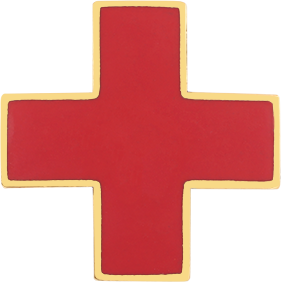 SW-C130RE_G - Red Cross $27.50 Red Cross Pin Model C128GWM Sold by the pin (NOT by the pair) Finish GoldRhodiumNickelGol-Ray Attachment Double Clutch Collar Brass Size 15/16" (largest)