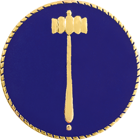 SW-C100BE_G - Single Gavel $27.50 Two Crossed Gavels Pin Model C100BE Sold by the pin (NOT by the pair) Finish GoldRhodiumNickel Attachment Double Clutch