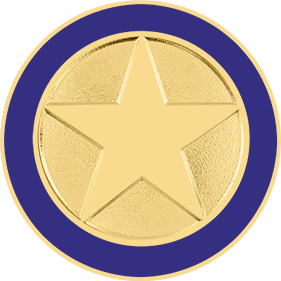 SW-C1004BLE_G - Star with Enamel Rim $27.50 Star with Enamel Rim Pin measures 15/16" (slightly smaller than 1"). Comes with 2 clutch pins on the back. Finish GoldRhodiumNickel Attachment Double Clutch