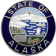 SW-AKM_N - State of Alaska $26.00 Custom Product - Delivery between 3-5 weeks. State of Alaska Seal measures 15/16" round (just under 1"). Available in Gold or Silver finishes. Sold as each (not sold in pairs). Finish NickelRhodiumGold Attachment Double Clutch Collar Brass Size 15/16" (largest)