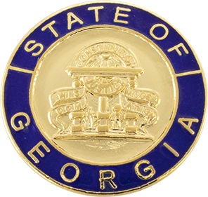SW-GAE_G - State of Georgia $27.50 Custom Product - Delivery between 3-5 weeks. State of Georgia measures 15/16" round (just under 1"). Available in Gold or Silver finishes. Sold as each (not sold in pairs). Finish GoldNickelRhodium Attachment Double Clutch Collar Brass Size 15/16" (largest)0.5625" (9/16")