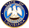 SW-LA2M_G - State of Louisiana $32.00 Custom Product - Delivery between 3-5 weeks. State of Louisiana measures 15/16" round (just under 1"). Available in Gold or Silver finishes. Sold as each (not sold in pairs). Finish GoldNickelRhodium Attachment Double Clutch Collar Brass Size 15/16" (largest)