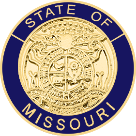 SW-MOBLE_G - State of Missouri $26.00 Custom Product - Delivery between 3-5 weeks. State of Missouri Seal measures 15/16" round (just under 1"). Available in Gold or Silver finishes. Sold as each (not sold in pairs). Finish GoldNickelRhodium Attachment Double Clutch Collar Brass Size 15/16" (largest)