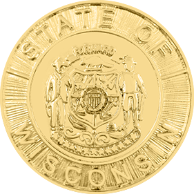 SW-WIP_G - State of Wisconsin $23.50 Custom Product - Delivery between 3-5 weeks. State of Wisconsin measures 15/16" round (just under 1"). Available in Gold or Silver finishes. Sold as each (not sold in pairs). Finish GoldNickelRhodium Attachment Double Clutch Collar Brass Size 15/16" (largest)