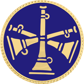 SW-C177FBE_G - Three Crossed Bugles $27.50 Three Crossed Bugles Seal Insignia pin sold by the piece (NOT pair). Measures 15/16" in diameter. Comes with 2 pins on the back. Finish GoldRhodiumNickel Attachment Double Clutch