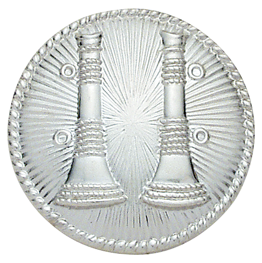 SW-C110N-HAT - Two Parallel Bugle Hat Badge $32.00 Two parallel fire hat badge on a circle backing. Size: 1.625" diameter. In-stock and ready to ship! Finish NickelGold Attachment Screw Nut & Post
