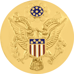 SW-C125M_G - US Coat of Arms $32.00 US Coat of Arms Pin measures 15/16" (slightly smaller than 1"). Comes with 2 clutch pins on the back. Finish GoldRhodiumNickel Attachment Double Clutch