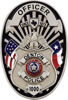 SW-B105_DENTON_PD_TX_PO_SR_PIN - Denton PD Custom Badge - Police Officer - Silver - Uniform Dimensions: 2.38"W x 3.50"H $194.50 Custom Badge for Denton Police Dept. Variation OFFICERPUBLIC SAFETY OFFICERCRIME SCENEDETECTIVESERGEANTLIEUTENANTDEPUTY CHIEFASSISTANT CHIEFCHIEFRETIRED OFFICER Finish Sil-Ray Attachment Pin & Safety Catch (Curved Shape)Wallet Clip (Flat Shape)Pin & Safety Catch (Flat Shape) Special Instructions (eg. Badge Number if applicable)