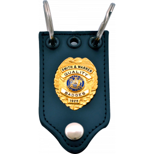 Duty leather universal K9 badge holder. Designed for attaching to a K9 collar. This holder is designed to work with any Smith & Warren badge under 2" in height. Only works with pin & safety catch attachment on the badge.
