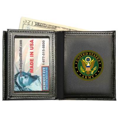 PF-104-M-A - Army Medallion Wallet w/ Money Pocket $67.50 Army Medallion Wallet model 104 with 5 credit card slots & flipping ID window.