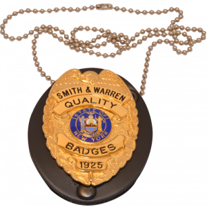 - Made from Genuine Leather, this teardrop shape holder can be used to hold your badge around the neck or on a belt. It includes a heavy-duty steel belt clip and a snap closure. The holder is designed to work with any badge with pin & safety catch attachment. It is supplied with a 30" beaded chain