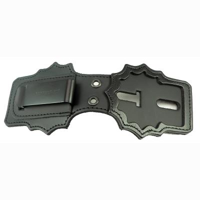 Perfect Fit recessed belt clip badge holder. Made of professional duty quality leather, and comes with a sturdy belt clip and 30” chain. This recessed belt clip badge holder is made specifically for New York Police Department Detective Badges.