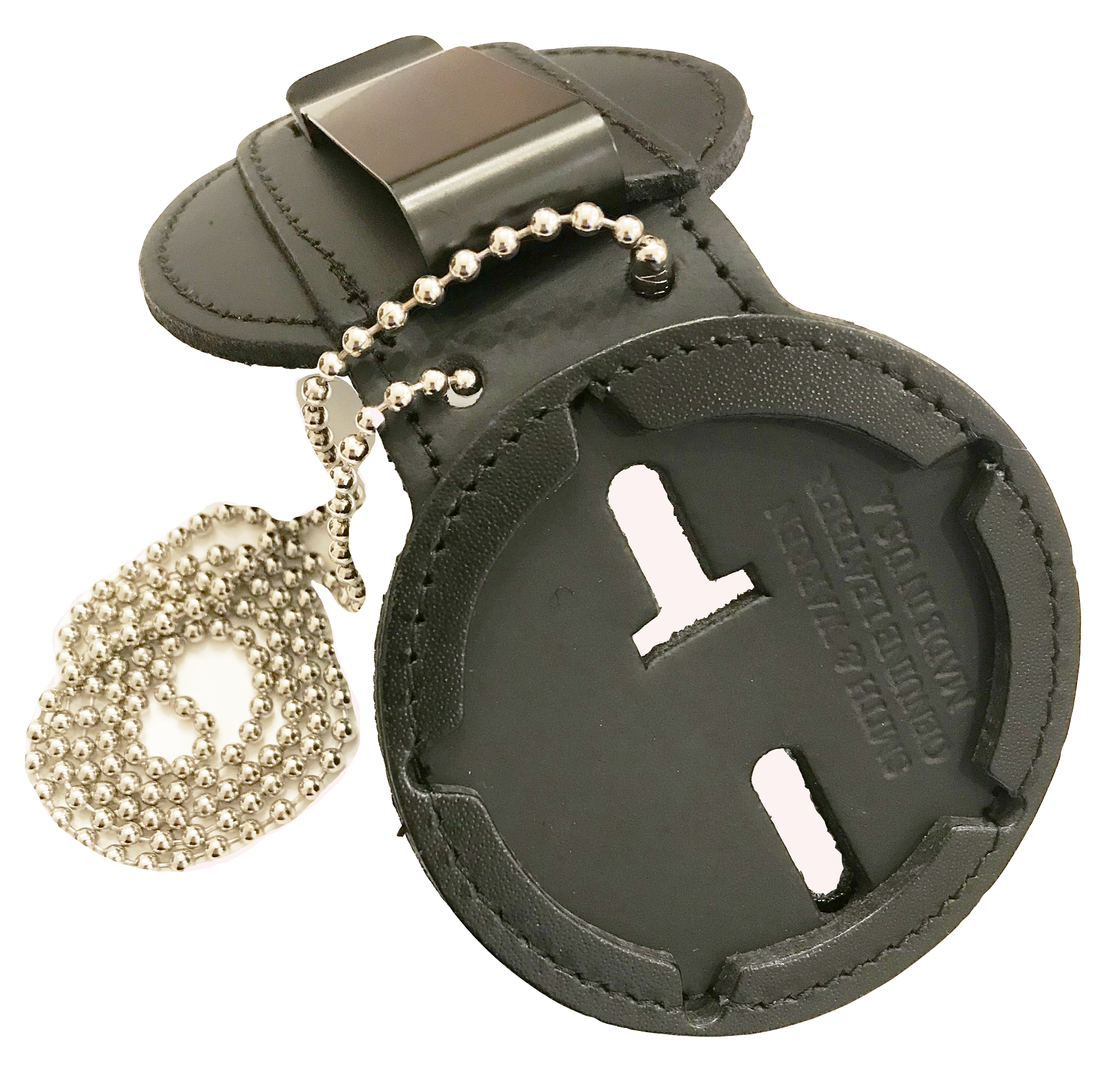 SW-BH716PC_PCSO - Black $46.00 Belt Clip Holder for Potter County Sheriff's Anniversary Badge. Color BlackDark Brown